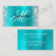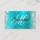 Silver Glitter Turquoise Blue Foil Fancy Monogram Business Card