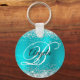 Silver Glitter Turquoise Blue Foil Fancy Monogram Key Ring