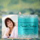The background features a faux sparkly silver glitter with a aqua teal blue brushed metal ombre foil digital art graphic.