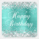 Silver Glitter Turquoise Happy Birthday Square Sticker