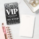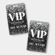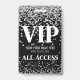 Silver Glitter VIP Event Badge. This stylish event badge is perfect for Sweet 16 parties, Bat Mitzvahs, New Year’s Eve celebrations, and more. The design features a black background with a shimmering silver glitter gradient at the top and bottom, adding a festive and elegant touch. The same design is printed on both sides for a polished look. Featuring bold serif fonts mixed with clean typography, it provides space for the event name, date, and "All Access Pass." The text is fully customisable, and you can even change the background colour to match your event’s theme. This badge is a sophisticated way to make your guests feel extra special!