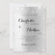 A modern, elegant and minimalist wedding invitation. Faux silver looking background decorated with faux glitter. Personalise and add your names and details. Black coloured letters.