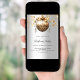 An invitation for a Christmas Party. A faux silver looking background. Decorated with a large golden vintage looking bauble and stars. Personalise and add the details. Black text.