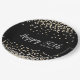 Add your own special touch to this elegant custom birthday party plate design featuring sparkly gold and silver confetti over a black background, modern script typography with the words "Happy 50th" and the birthday girl's name.