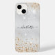 A faux silver metallic looking background, decorated with faux gold and silver glitter dust. Personalise and add your name. The name is written with a modern and trendy hand lettered style script with swashes.