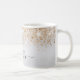 A faux silver looking background, decorated with faux gold glitter dust. Personalise and add your name written with a trendy hand lettered style script with swashes.