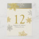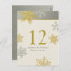 The text on this silver grey, gold, and ivory or champagne snowflake winter wedding or special occasion table number card is fully customisable. To change the table number and the names and date, use the personalise option. For these, you must change the table number, change the quantity to 1, and then add it to your cart and repeat the process for all the table cards you need. For more extensive changes to the card including changes to the font, font colour, font size, or text placement, use the customise option.