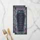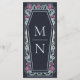 Add a touch of gothic elegance to your feast with these wedding menus featuring a coffin-shaped frame, adorned with thorns, roses, and silver accents against a deep blue background. Perfect for a hauntingly romantic dining experience! Personalise the text, font, and background colour to suit your design preferences. Matching Items in our shop for a complete party theme. Please note that the silver on the cards is NOT real foil and is printed in flat colours.