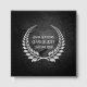 Silver graduation laurel symbol on black slate rock background for graduation party.