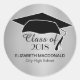 Silver graduation sticker with black text and mortar board. Class of and then the graduate's name and high school or college follow. Elegant sticker to use as an envelope seal on graduation announcements and graduation party announcements. Easy-to-customise template.