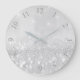 Silver Gray Glitter Minimal Metallic Monochromatic Large Clock