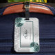 A faux silver looking background decorated with green florals, flowers. Personalise and add your monogram initials, first name and full name on front.