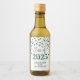 Graduation party custom mini wine bottle labels class of 2025 with silver and green glitter pattern confetti.
