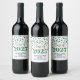Graduation party custom wine bottle labels class of 2025 with silver and green glitter pattern confetti.
