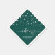 This custom paper napkin will add stylish detail to your special day. This design features stylish script lettering "cheers" and a hexagon shape confetti with an emerald green background colour. Perfect party decor for a modern navy blue & silver theme birthday party. More matching invitations and party supplies are available at my shop BaraBomDesign.
