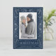 Silver leaves and greenery (not foil) surround your favourite photo and your names and MERRY CHRISTMAS in chic silver lettering below. Use ANY colour for the background or keep or our navy blue. **ADD more photos or details on the back. Select Matte for heaviest paper and high definition for best print quality.