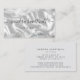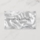This elegant modern business card features an image of white silk, framed on the top and bottom by grey and white watercolor agate borders trimmed with sparkly silver faux glitter. Personalise it with your name in off-black handwriting-style script and your business information in sans serif font. The reverse is a coordinating shade of solid pale grey. Ideal for hair stylists, makeup artists and aestheticians
