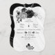 silver grey & black flowers botanical wedding invitation