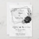 Elegant black and silver grey flowers on a geometric frame on white and silver grey marble background birthday party invitation