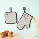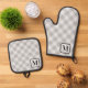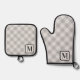 Silver Grey Buffalo Plaid Gingham Monogrammed Oven Mitt & Pot Holder Set