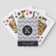 Silver Grey Chevron Black Monogram Name Custom Playing Cards