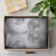Silver Grey Christmas Baubles On Grey Bokeh Tissue Paper