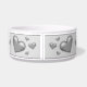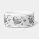 Destei's illustration of silver grey colour hearts in different sizes. The background colour is light grey and the top and bottom have a thin grey border. There is also a personalizable text area for a name or other custom text.