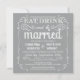 Eat, Drink, and be Married -- Elegant rustic style country wedding invitations -- Swirly, curly scrolls and old-fashion vintage typography in white lettering on silver pearl grey background. Add the bride and groom names and wedding info in this easy to use template. Fancy, fun and whimsical, retro hand-written chalk style calligraphy can be modified for your formal or semi-formal wedding theme. Casual but classy modern style is perfect for trendy contemporary weddings with a touch of romantic sophisticated charm for traditional couples. Please contact us for help with customisation if you need additional room for your wedding details. NOTE: Shown on standard A7 size invitation cards. Other sizes and styles available, along with matching postage stamps, coordinating bridal stationery, wedding packet accessories and shower favours.