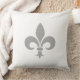 Elegant Silver grey Fleur de Lis on white colour Throw Pillow. Fleur de lis relates to royalty, virtue and harmony.