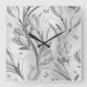 Silver Grey Floral Graden Monochromatic Butterfly Square Wall Clock