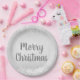 Pretty Silver Grey frost Merry Christmas design Paper Plates.