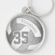This cute volleyball keychain features a feminine silver grey volleyball graphic with contrasting white panels - an artsy floral kaleidoscopic pattern is blended with the coloured volleyball panels - her name and jersey number are customisable - by katz_d_zynes