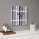 Geometric linear, rectangle, striped pattern of silver, grey and black hues.
