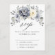 Silver Grey Ivory Floral Winter Wedding RSVP Postcard
