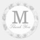 Silver Grey Monogram Thank You Favour Classic Round Sticker