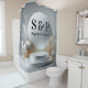 Silver Grey Podium Monogram Modern Script Wedding Shower Curtain