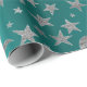 Silver Grey Stars Moon Sky Metallic Greenly Teal Wrapping Paper