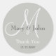 Monogram Initial Stickers with bride and groom name,date of wedding and a thank you message to express your gratitude on your wedding day or any special occasion.