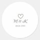 Silver heart wedding couple name letter modern classic round sticker
