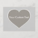 This postcard features a solid silver heart with a white outline. Click "Customise it!" to re-size/re-position solid silver heart image and/or change background colour, add image and/or text overlay (name, monogram). The reverse side of the card is blank, awaiting your personalised text or handwritten sentiments. Choose font style and colour; adjust text size and layout.