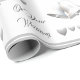Gorgeous Silver Hearts & Bells Wedding wrapping paper design features the image of silver wedding bells and ribbons with silver hearts patterned against a white background. Customisable text reads, "On Your Wedding" and is displayed in an elegant silver font. A silver and white lining is featured at edges of design.