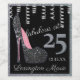 Celebrate her 25th birthday in style with this beautiful label. A silver glitter high heel shoe on a black and silver background. Your name and birthdate are personalised with "Fabulous at 25". Silver curly streamers make this waterproof and scratch resistant label perfect for your fun celebration. Customise all text and fonts. To view more party favour products, please visit "The Hungarican Princess - A Boutique™" @zazzle.com/hungaricanprincess. Congratulations and Happy Birthday.
