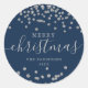 Silver Holiday Christmas Glitter Confetti Navy Classic Round Sticker
