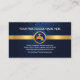 Overleaf, the same blue water drop theme is used with a gold stripe at the top. Riding this gold stripe is a gold faucet logo you can use. Both the logo and the gold stripe can be moved anywhere around the card's face. Your prestigious is at the top followed by the contact details and a slogan caption option near the base of the card.