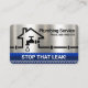 A silver cover features a home water pipeline that has a leaking faucet dripping water into the basement. The blue flood waters contain an oversize slogan caption "STOP THAT LEAK!" which you can change to suit your own service needs. Over at the top lies your prestigious name and the contact details.