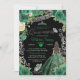 Silver Hunter Green Mexican Floral Quinceañera Black Background Invitation