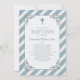 A trendy new design featuring a decorative panel, with a cross, over a blue and white striped background trimmed with silver.