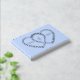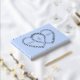 A beautiful silver foil wedding guestbook in pale blue with joined heart frames