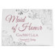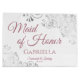 This beautiful gift bag is designed as a wedding gift or favour bag for the Maid of Honour. It features an elegant design with silver faux foil lace frills and dusty rose or mauve pink coloured text reading "Maid of Honour" as well as a place to enter her name, the couple's name, and the wedding date. Fill with gifts, favours, candy, or any other wedding swag or thank you gifts. Beautiful way to thank her for being a part of your special day.