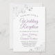 These beautiful wedding invitations are designed for guests who are invited to the reception only, but not the actual ceremony. They feature a simple yet elegant design with silver faux foil lace frills on a white background. The text alternates between grey and lavender or dusty purple, with a marbled light purple back.